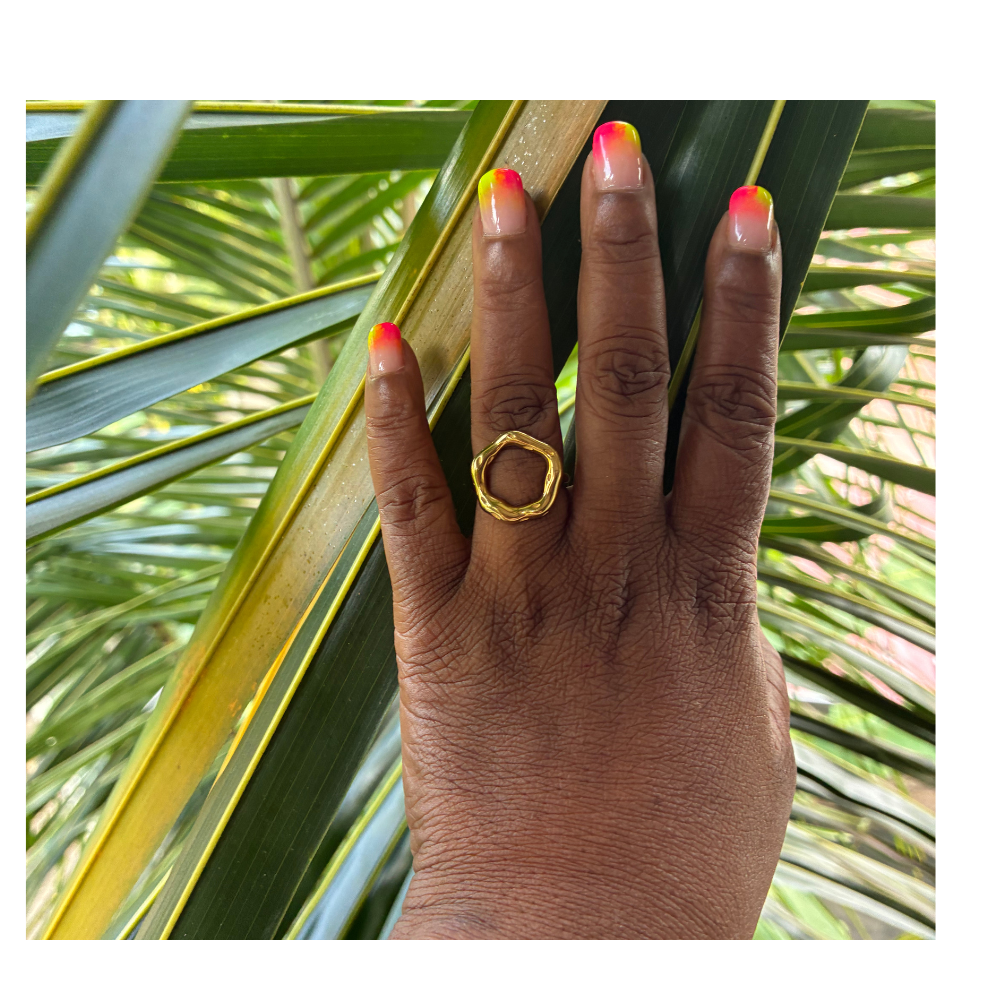 Bague au design ouvert, douce et moderne. Avec son rond délicat, elle apporte une touche minimaliste et féminine à la main.