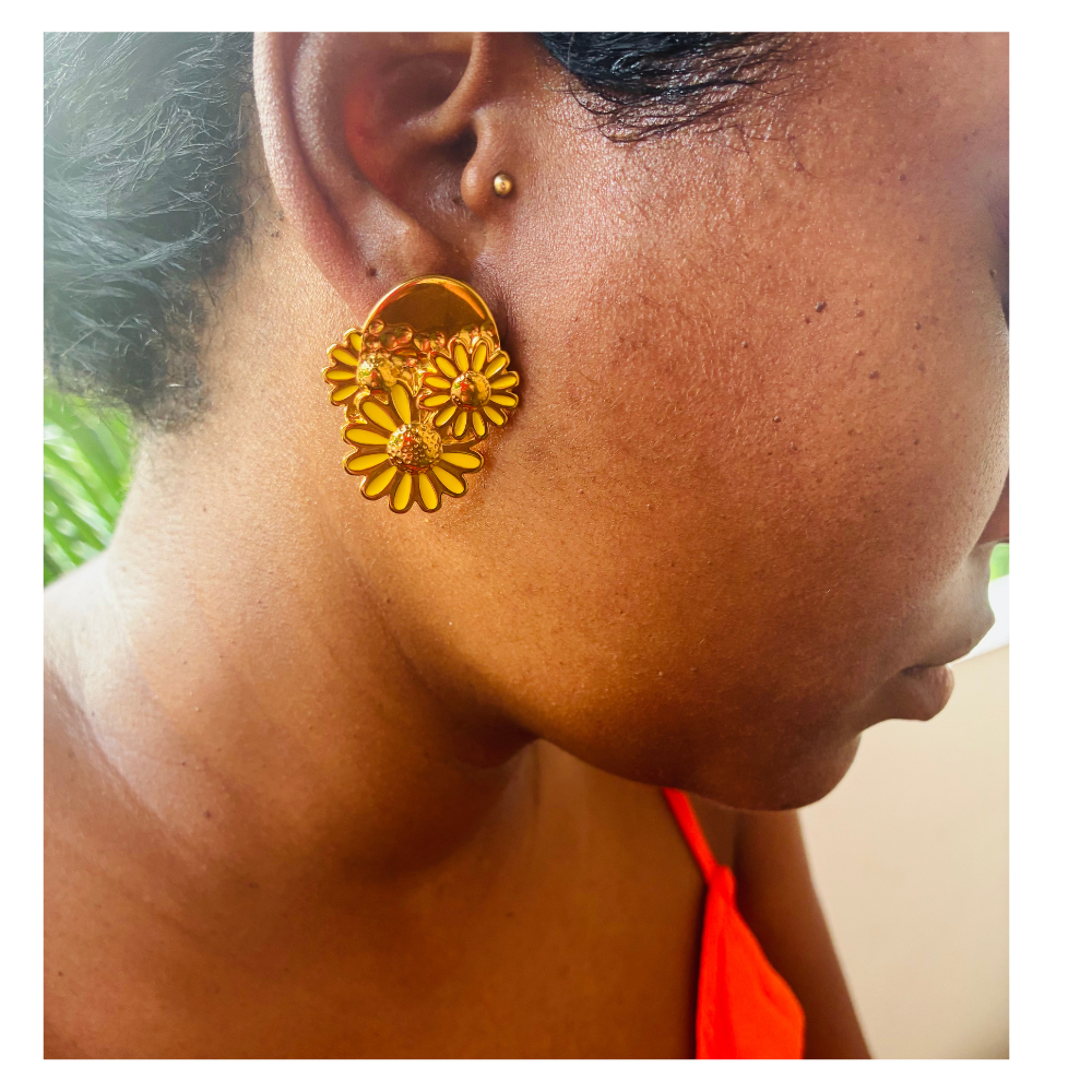 Apportez une touche florale et élégante à vos tenues avec ces boucles d’oreilles, une touche de couleur jaune sur les pétales.