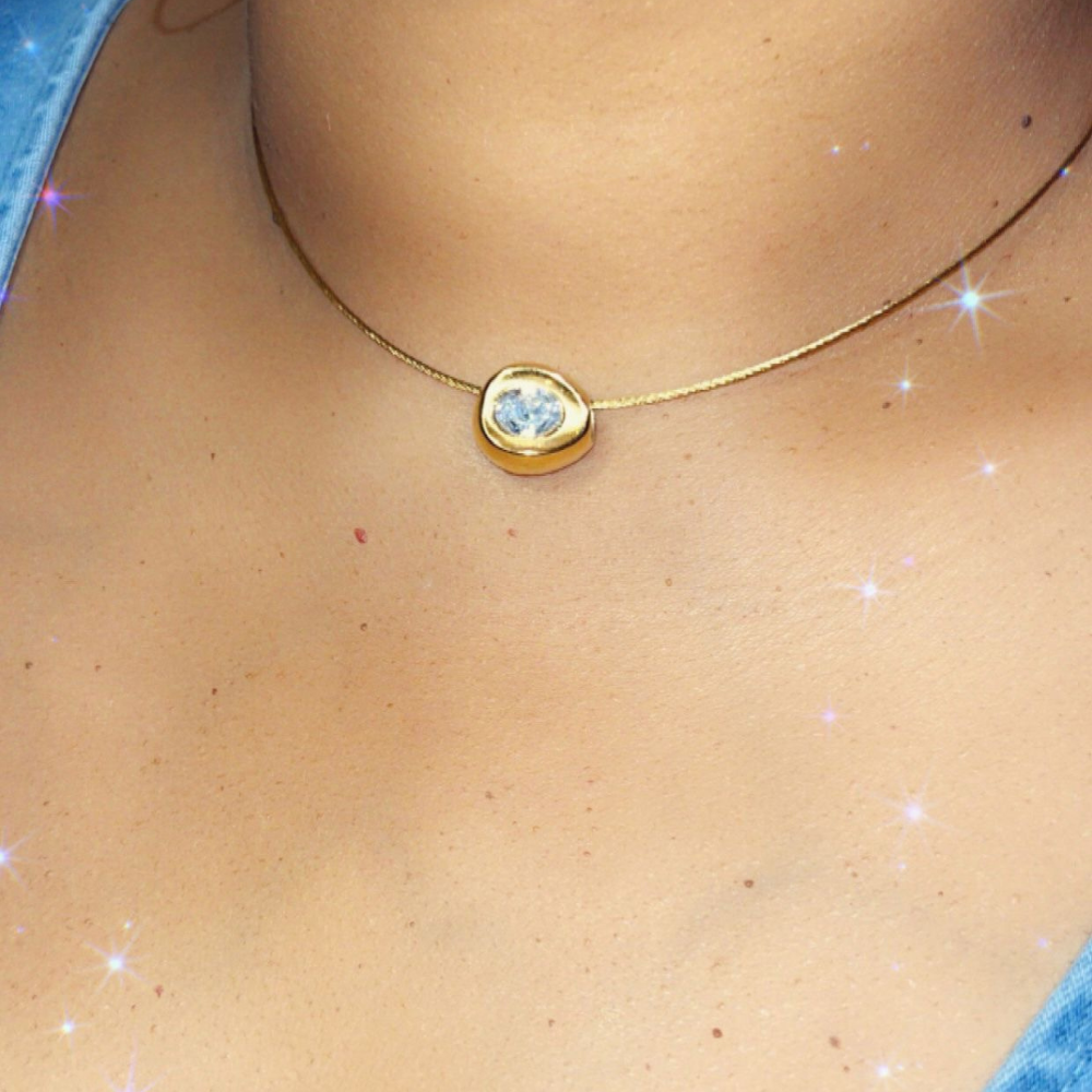 Le collier Arielle allie modernité et féminité avec sa forme rigide élégante et son pendentif orné d’un strass scintillant. Une pièce forte et délicate à la fois, parfaite pour illuminer votre décolleté avec subtilité.