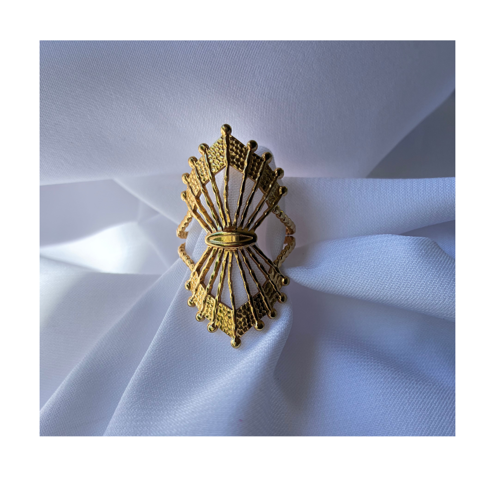 Bague dorée au design aztèque, en acier inoxydable, pièce forte et originale pour affirmer son style.