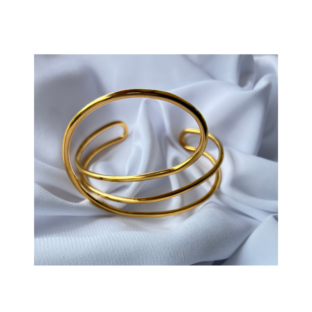 Une manchette dorée au design irrégulier qui capte la lumière sous tous les angles. Une pièce forte et féminine, idéale pour affirmer votre style.