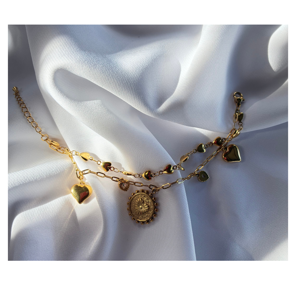 La première est ornée de petits cœurs ainsi que de pendentif cœur.