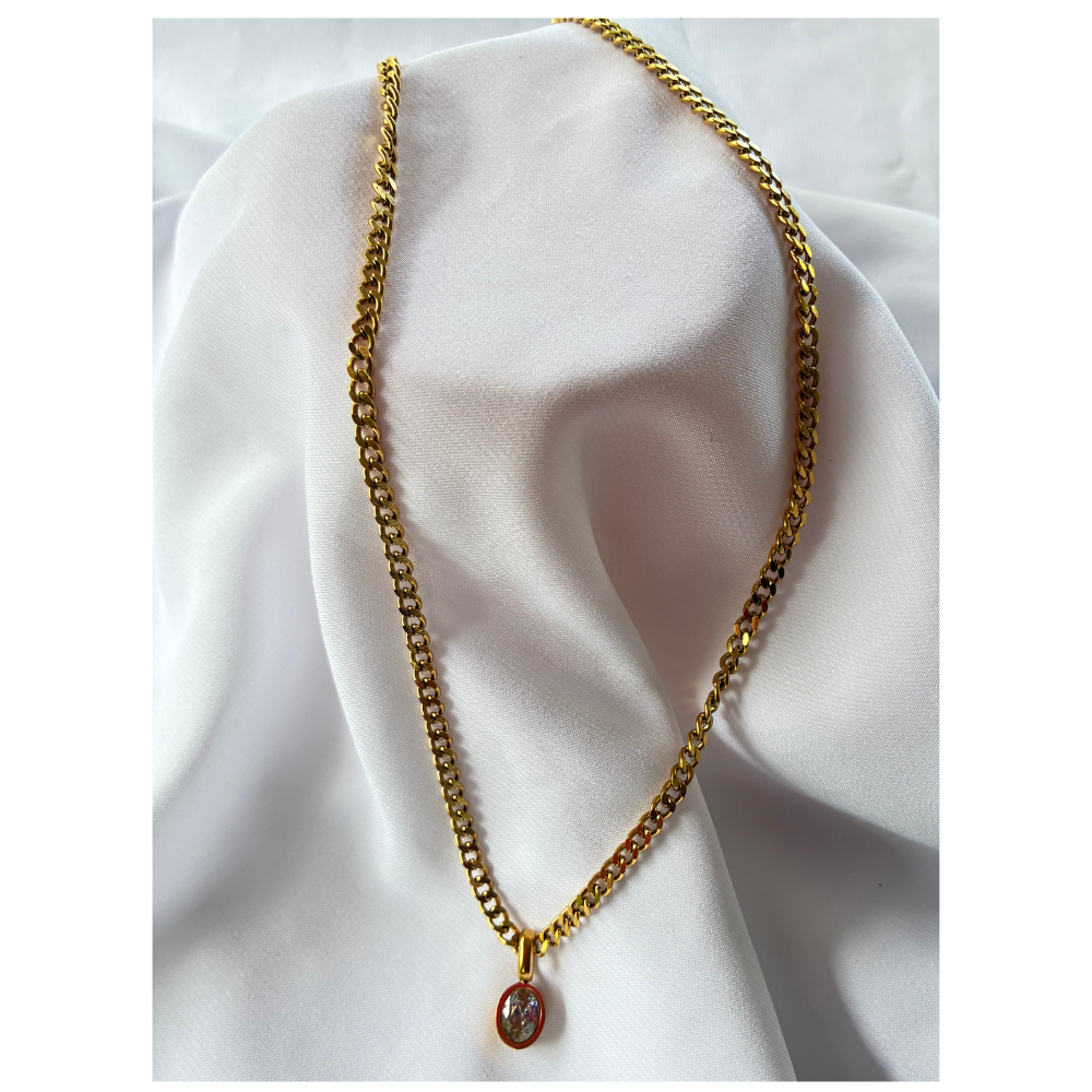 Collier Soléane, un modèle à mailles moyennes sublimé par un pendentif au style sautoir.